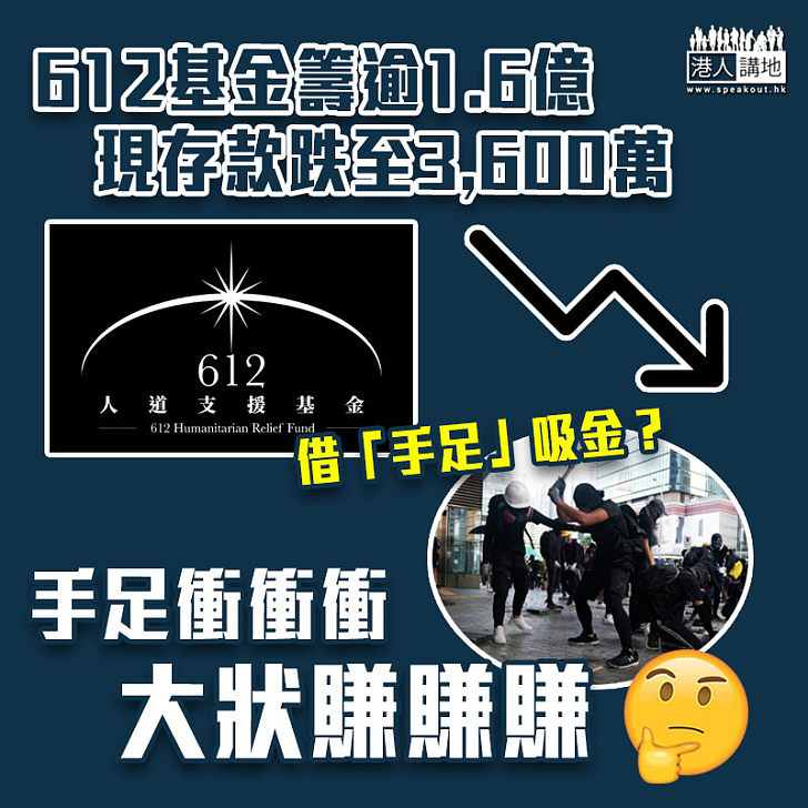 Source: img.speakout.hk 612人道支援基金 612 humanitarian relief fund january 19 · 【 612 基金:12月底可動用結餘$181萬,1月份預計開支$1,500萬,需要大家捐款!